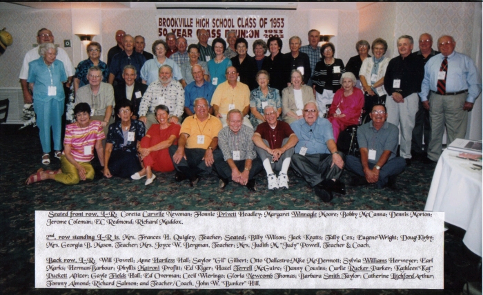 Deceased members of the class of 1953: Richard Earl Clingempeel, Jr. March,12, 1957 - age 20 Frank Marland Eagle, Jr., Feb. 9, 1998 - age 62 Lillie Maola Fitzgerald Waterman, March 14, 2003 - age 68 James Edward "Buddy" Hill, Jr., Aug. 8, 1977- age 42 Carolyn Elizabeth Leftwich Ottinger, May 29, 2002, age 66 Vernum Carey Minnick, March 17, 1996, age 60 Phyllis June Newman, Dec. 24, 1987, age 53 Rebecca Jane"Becky" Thomas, June 3, 2000, age 64 Howard Wells, March 12, 1957, age 21 |
