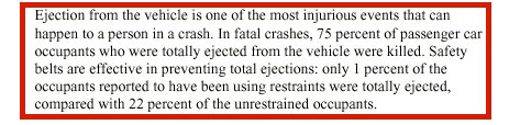 | Every hour someone dies in America simply because they didn't wear a safety belt. Safety belts are the most effective means of reducing fatalities and serious injuries, and sadly, many adults and children aren't using them. According to the National Highway Traffic Safety Administration (NHTSA), an estimated 5,500 lives could be saved each year by increasing the level of safety belt use in the United States to 90 percent. Yet, only 68 percent of Americans wear safety belts. By contrast, Germany stands at 95 percent. Adults who don't use safety belts may think that their behavior only affects them, but they're wrong. Studies consistently show that there is correlation between adult belt use and child belt use. According to National Highway Traffic Safety Administration (NHTSA), when a driver is buckled, 94 percent of the time children in that vehicle are buckled; but, when a driver is unbuckled, only 30 percent of child passengers are buckled. |